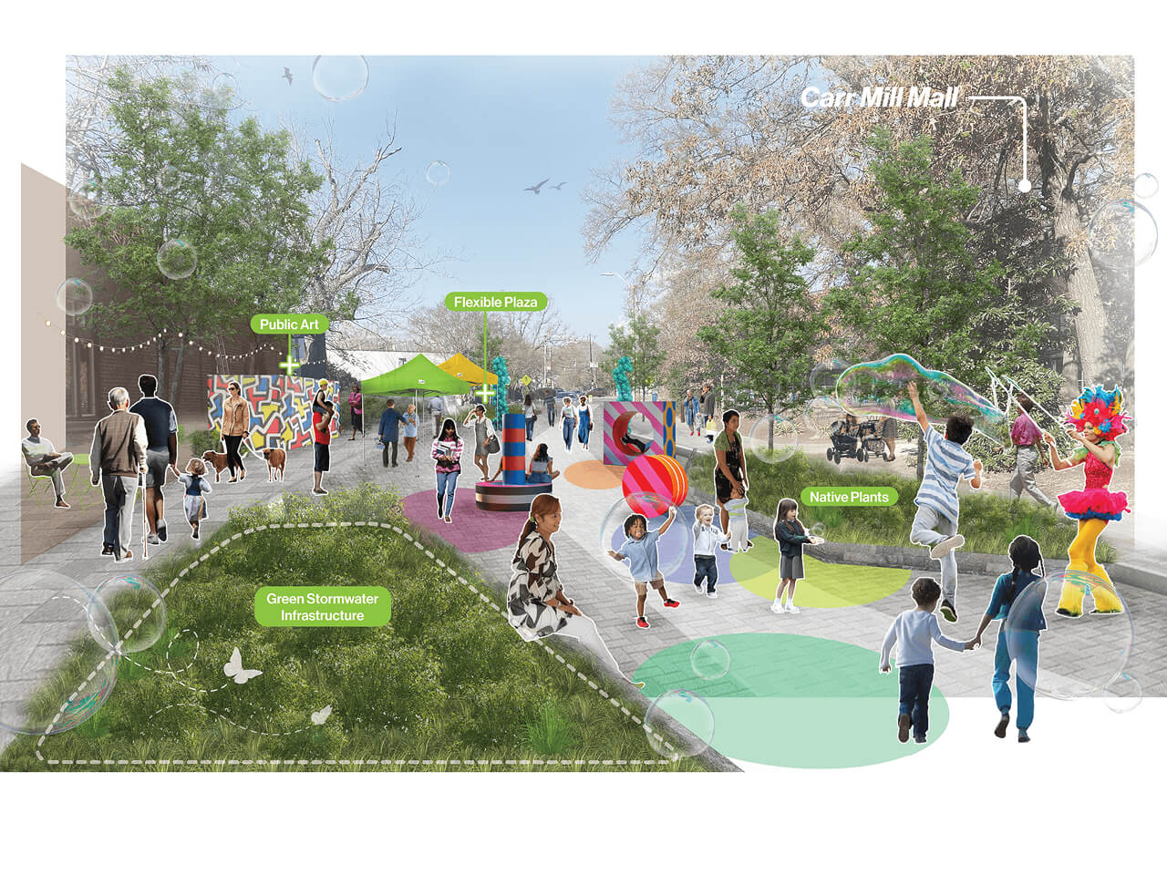 Renderings created for the Town of Carrboro, NC. Led graphic stylization and production. Work completed as part of employment with Site Collaborative.