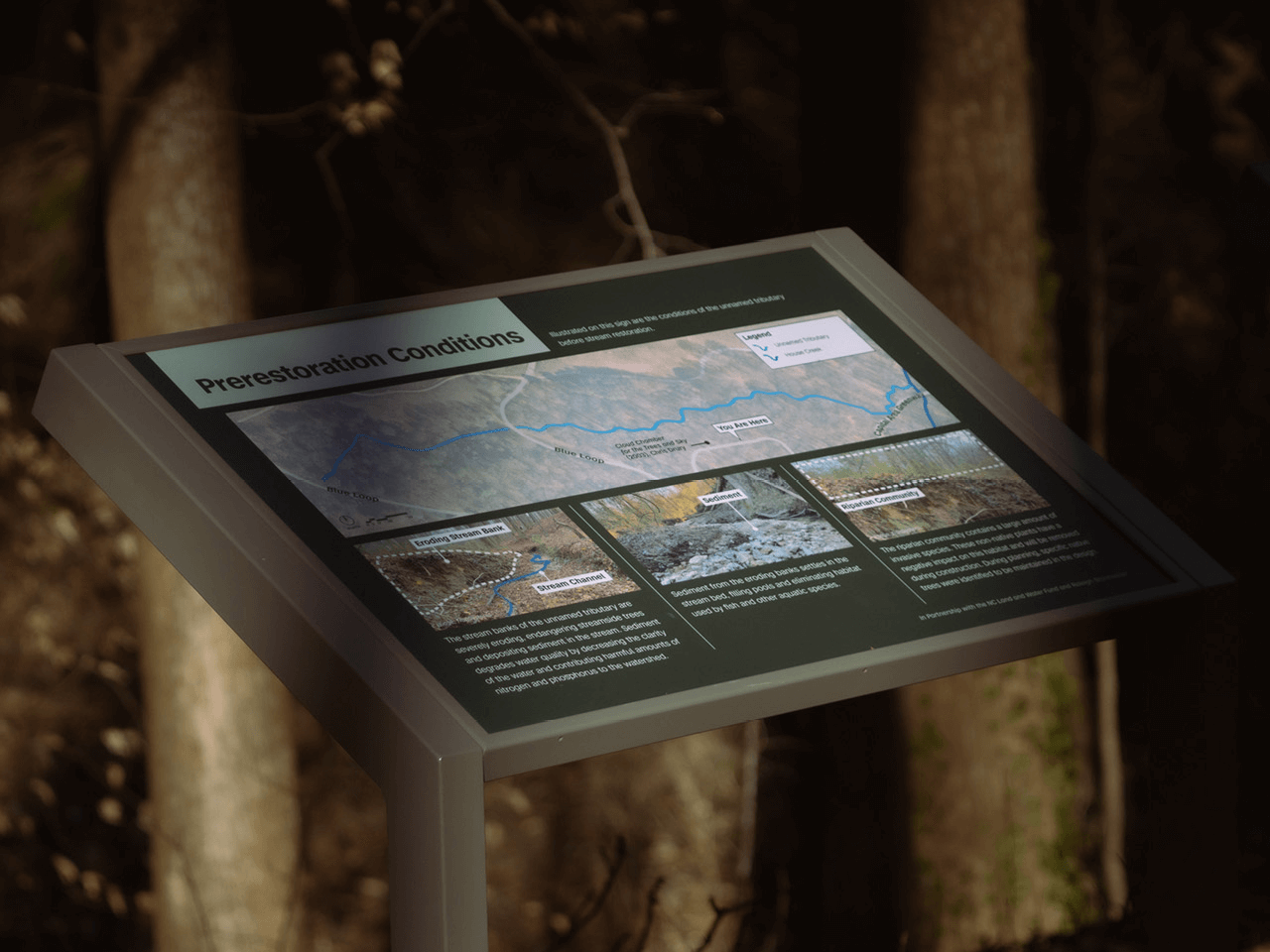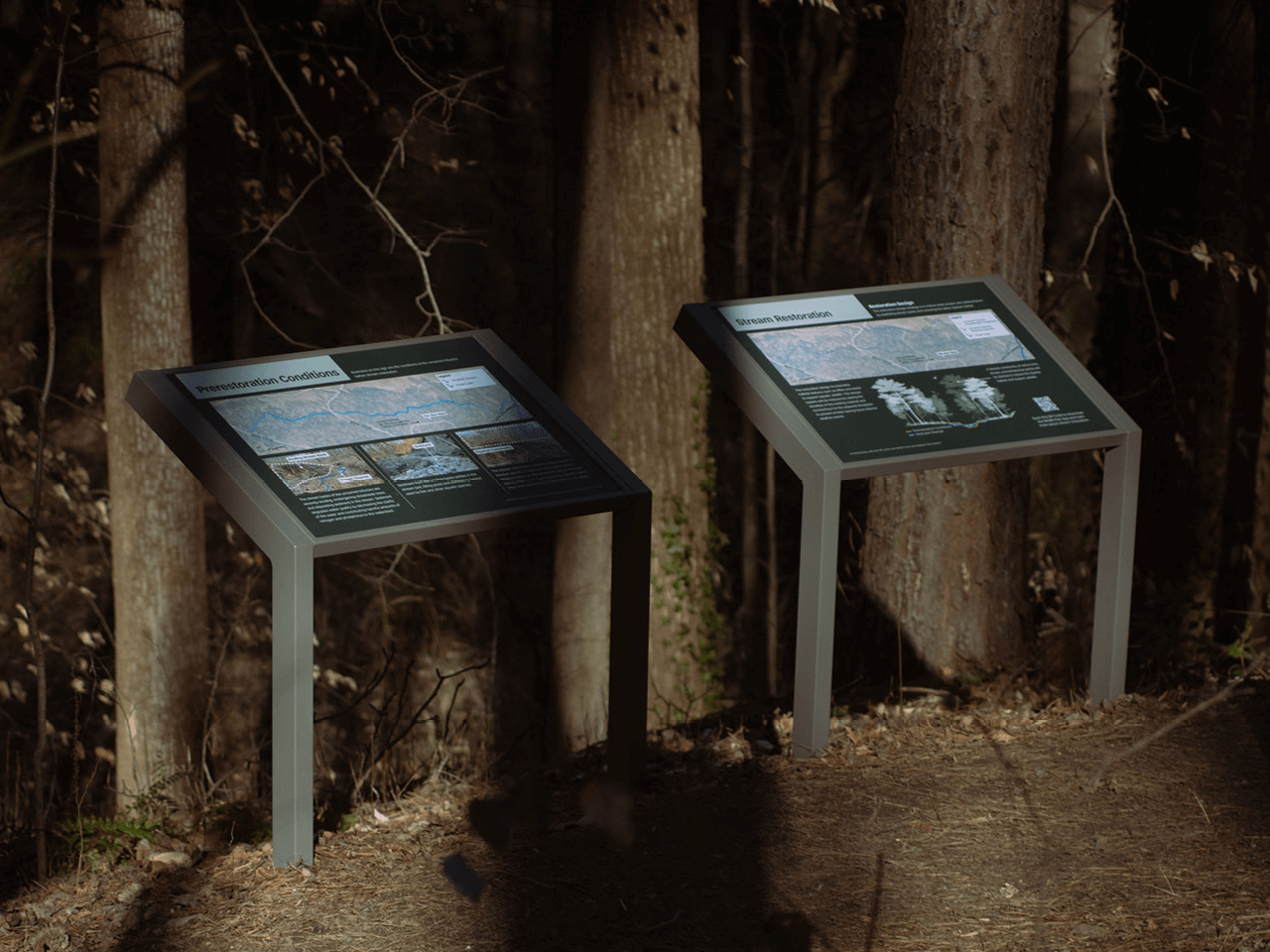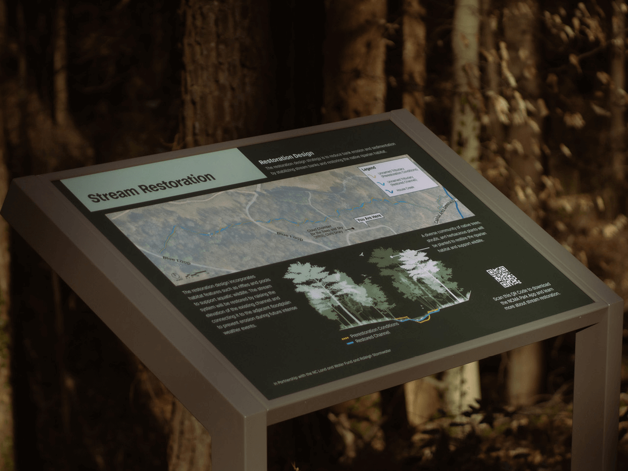 Installed in the North Carolina Museum of Art park alongside the forthcoming stream restoration project. I worked directly with museum staff to illustrate the restoration concepts while adhering to their in-house graphic standards. Work completed as part of employment with SEPI, a division of TranSystems.
