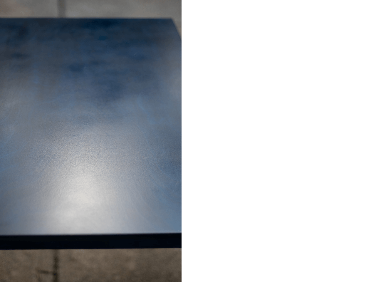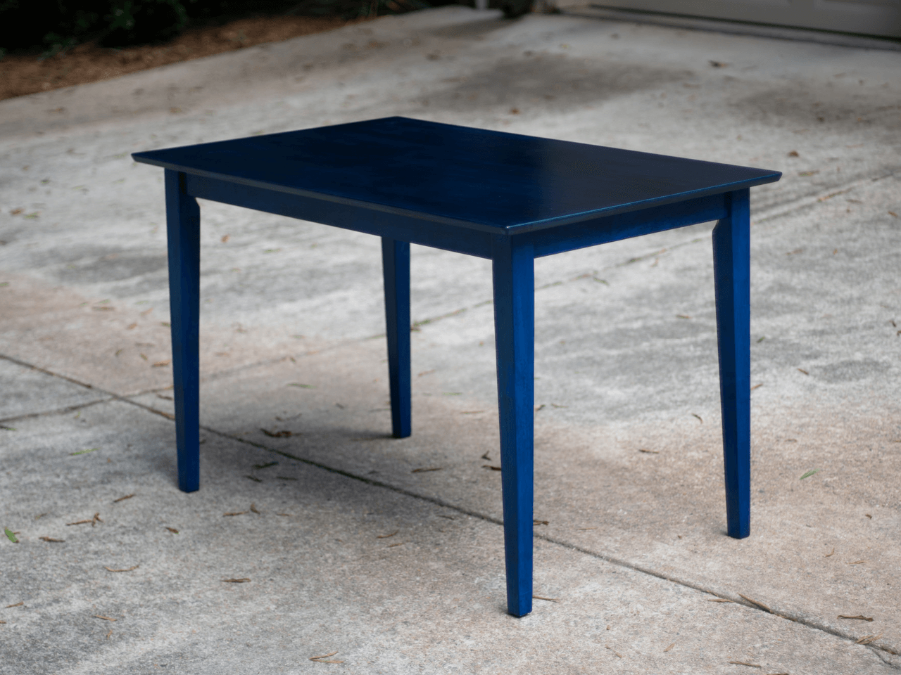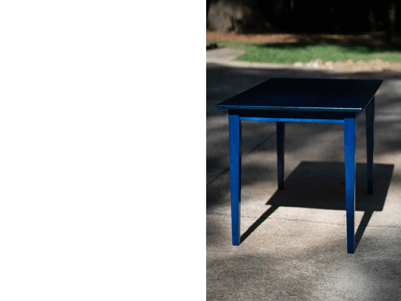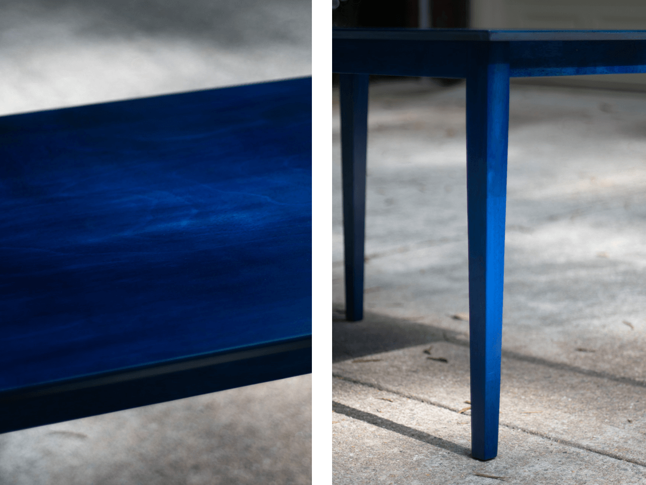 Refinished table. Blue aniline dye and UV filtering spar urethane. With Kevin Kane.