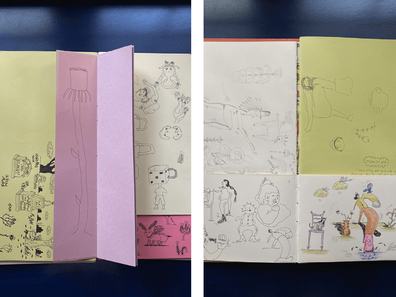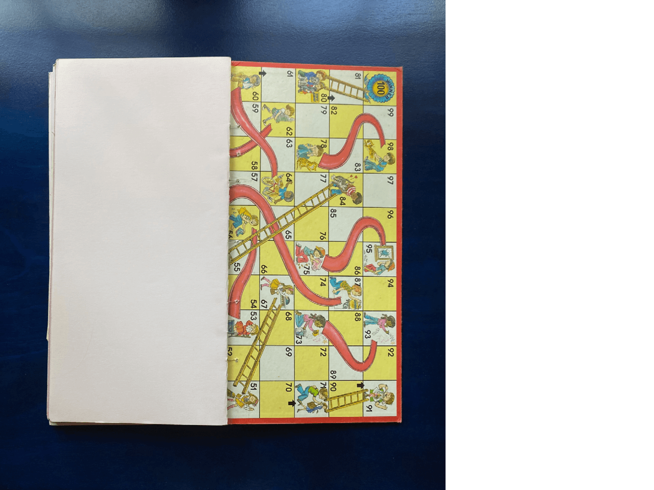 Handmade sketchbook with Chutes + Ladders boardgame board.